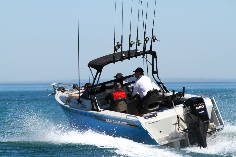 The Bar Crusher 670 hull still dominates the trailerable aluminium market for experienced seafarers, sports fishers and divers. It is a dominant performer for the Melbourne based company, Bar Crusher Boats, whose models now include the cuddy (670C), centre console (670XS), rear centre console (670XSR), open hard top (670XT), walk around (670WR), the “Exocet” (670HT Special Edition) and all of them under the famous Bar Crusher banner of “Fishing Weapons!”