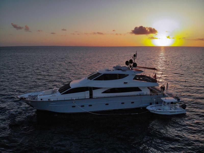 Through the owners foresight to make the yacht more lifestyle friendly with the varied Australian weather conditions, in 2013 and 2014 more than $1,500,000 was spent in a shipyard period at Rivergate Marina and Shipyard. An upgrade to the flybridge converted it into a pure entertaining level designed to keep guests comfortable in all conditions and weather, from the heat of the Great Barrier Reef to the cooler Melbourne nights.