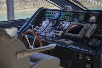 The list of works included the addition of a hard top, enclosed windscreen, bar area, supercharged air conditioning to keep you cool or warm in any condition, removal of the davit crane to create more deck space, laying of all new teak decks and a heavily engineered hydraulic swim platform to carry the tender and a submersible swim platform.