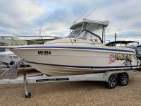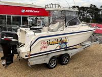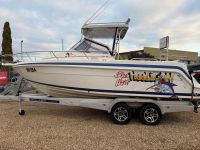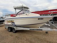HAINES HUNTER 680 SF ENCORE WALKAROUND CABIN FOR SALE. THIS CLASSIC HAINES GOT ITSELF A NEW PELAGIC ALLOY TRAILER IN 2014. POWERED BY A 2006 MODEL 250 HP SUZUKI FOUR STROKE, THIS POPULAR FISHING BOAT FEATURES HARD TOP WITH ROCKET LAUNCHER, FRONT & SIDE CLEARS, HYDRAULIC STEERING, TRIM TABS, RAYMARINE & FURUNO ELECTRONICS, GEM VHF & 27 MEG MARINE RADIOS, SNAPPER RACKS, LIVE BAIT TANK, BAIT BOARD, COAMING ROD RACKS AND MORE. PRICED TO CLEAR AT ONLY $64,990.00. CALL TERRY AT OUR *** DEALERSHIP FOR MORE INFO ***.