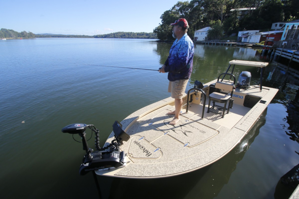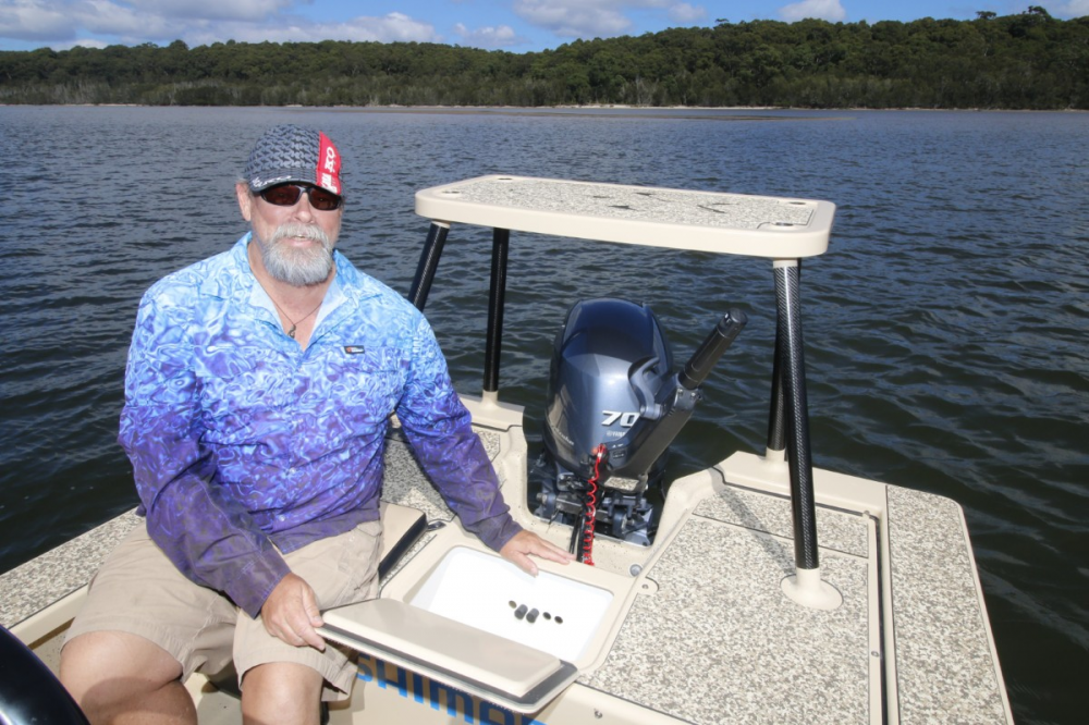 The tiller-steer setup offers an open, uncluttered workspace ideal for casting. Steve added a raised rear poling deck, giving him better sightlines and casting distance over shallow water. Instead of using a push pole, he relies on a Motorguide Xi5 55lb 12-volt electric motor for silent, remote-controlled manoeuvring. He joked about his choice of the black freshwater model as it matched the trim, and tried to tell me it wasn't due to fashion - "yeah, sure Starlo", I laughed! Yet he did after fit it with saltwater anodes to reduce corrosion.