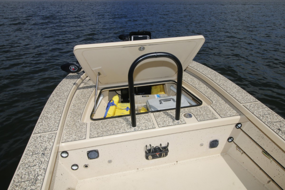 The layout is simple but effective: a spacious forward casting deck with ample underfloor storage, rear platforms that house batteries, and neatly wired switchgear accessed via bulkhead hatches. The non-skid deck can have an optional self-draining system that channels water to a unique sump and engine-well arrangement. There’s also a plumbed live well at the stern, which drains into the sump rather than overboard—a system Steve reckons might benefit from a minor tweak, but otherwise works well.
