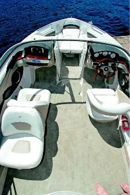 The interior design is different for 2005. There's a new dash, new helm bolster seat and new engine hatch. Selected options on the test boat included bow infill cushion, walkthrough windbreaker door, pull-up cleats for swinging fenders, a wood-grain steering wheel, cockpit and bow covers, galvanised trailer with brakes, safety equipment package and registration of the vessel and trailer.