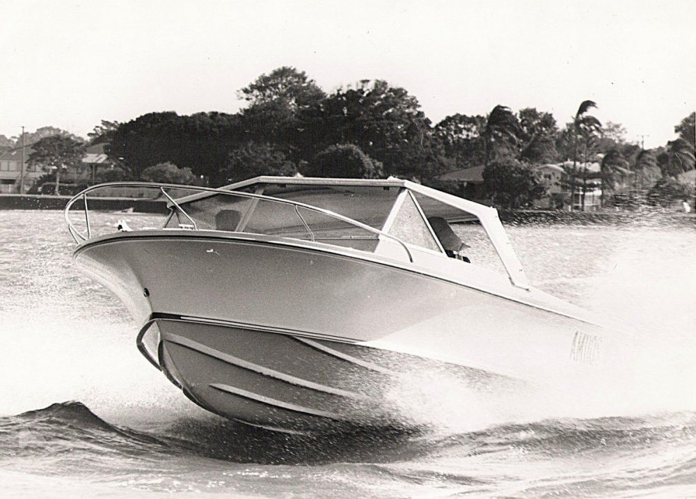 During the late 1950's and early 60's new ideas and designs were being developed by America’s Offshore racing entrepreneurs like Don Aronow, and Dick Bertram and their close association with Naval Draftsman C. Raymond Hunt. Dick and Ray’s famous “Lucky Moppie” and “Surfrider” hulls were a part of the “Deep V” revolution that competed with parallel inspirations from the developing Thunderbird, Donzi, Scarab, USA Sports, Cigarette, and Formula powerboat companies. John Haines Snr looked up to these designs; however, the main inspiration for his design came from the offshore racing and endless weekend testing that he did along with brother Garry, and in later years, his two sons, John Jnr and Gregory.