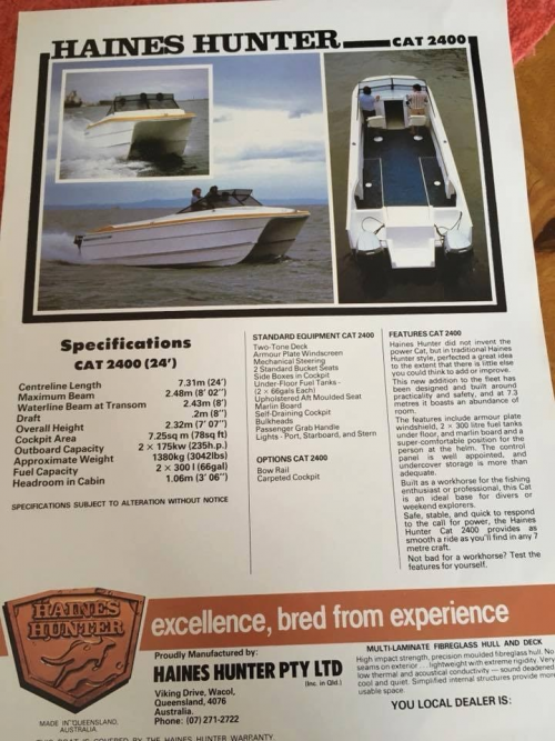 Haines family boats manufactured their reputation with deep V fibreglass hulls that started with original American Bertram 12 and 14’ hulls that advanced traditional boatbuilding skills. However, over the years, they have also produced twin hull, aluminium and some interesting cathedral hulled bowriders that are regaining popularity in today’s market. Haines boats always utilise premium construction processes, with plenty of reinforced fibreglass in the strong hulls. That is why old boats like the V17L are as popular today as they were on first release over fifty years ago.