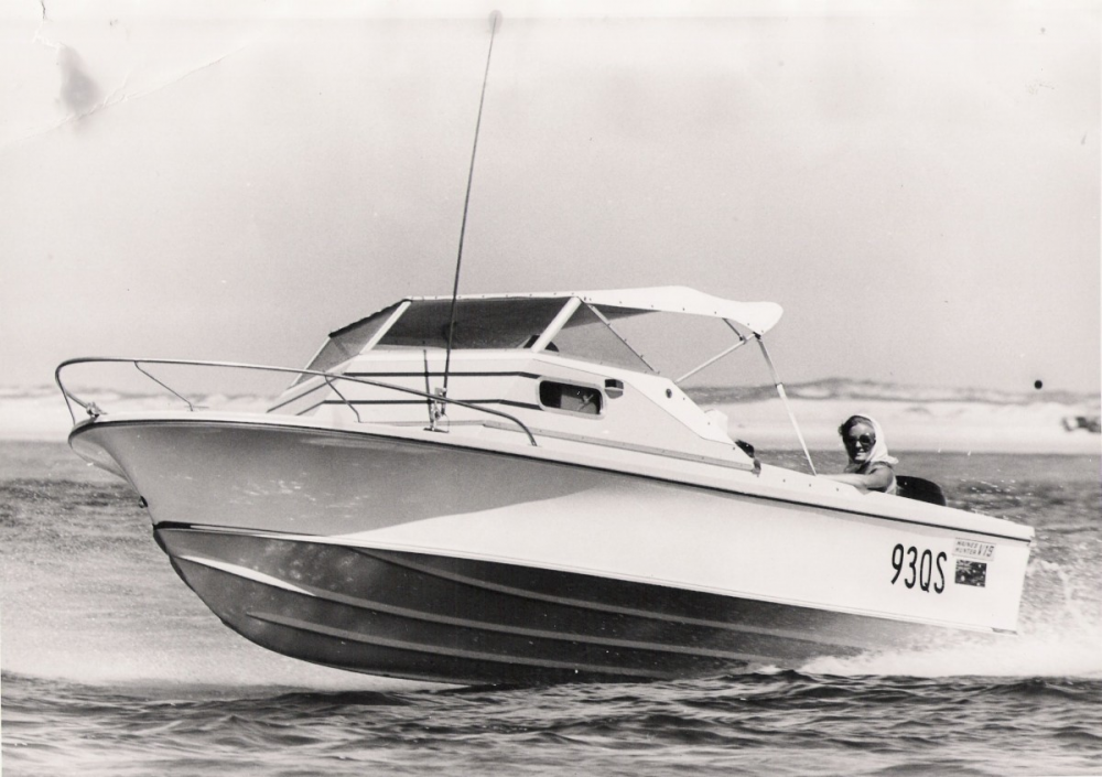 Early 1960's: Cam Craigie and Peter Huybers of QPS (Queensland Pastoral Supply) secured rights from Toronto Yacht and Boat Centre, Canada, to produce 12’, 14’, and 18’ boat models. They imported these models starting in 1960/61, later adding the 16’. The Haines brothers manufactured these boats for the Bertram Boat Company Australia, owned by Craigie and Huybers. The initial 12’, 14’, and 18’ models used the patented "Hunt Hydrolift" hull design. The 12’ and 14’ boats also featured a patented tunnel hull construction akin to designs by Barcrusher and Surtees. These boats had reverse chine designs with flared bows needing split mould construction. With deep V bottoms and broad beams, they had larger volumes than comparable narrow, flat-bottomed boats. Consequently, their lengths were measured around the gunwale rather than the centreline.