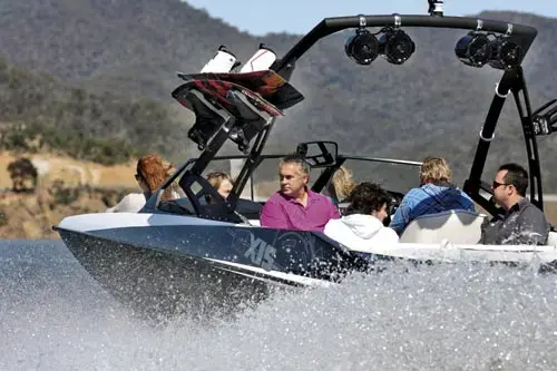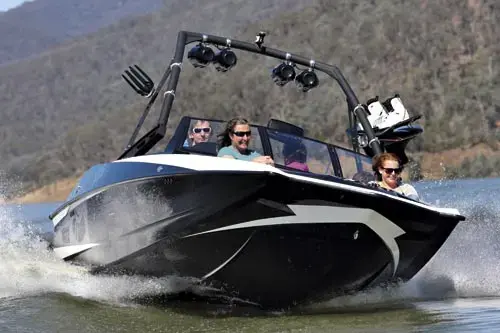 Our test of the Axis A22 at Lake Eildon, Victoria, coincided with a rare warm spring day, providing ideal conditions for evaluation and fun. With calm waters, clear skies, and minimal wind, the setting was perfect for assessing the boat's capabilities.