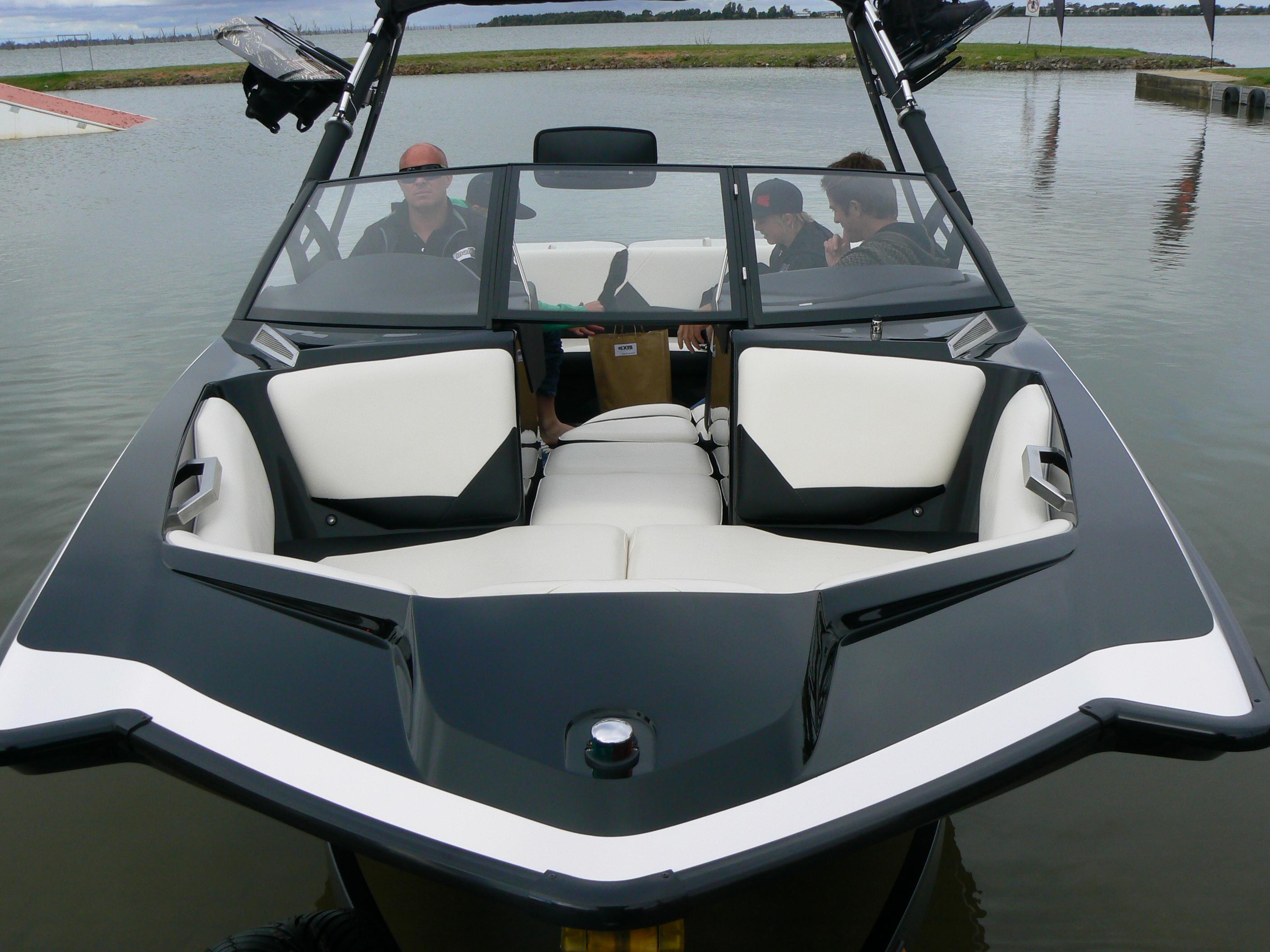 Standard features include cruise control, a removable fibreglass boarding platform, Axis board racks, and a bimini top for the FatAX wakeboard tower. Optional features include a premium stereo and air/lake temperature gauges.