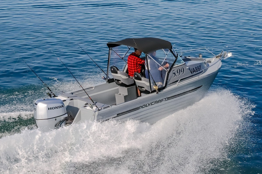 I have considerable experience with the small models and loved them, so I was genuinely excited to be offered the opportunity to test drive the flagship 599 Frontier. Polycraft boats come in a wide range of models, from 3m tenders to our 6.1m O/A Frontier Cuddy, which is also available as a centre console.