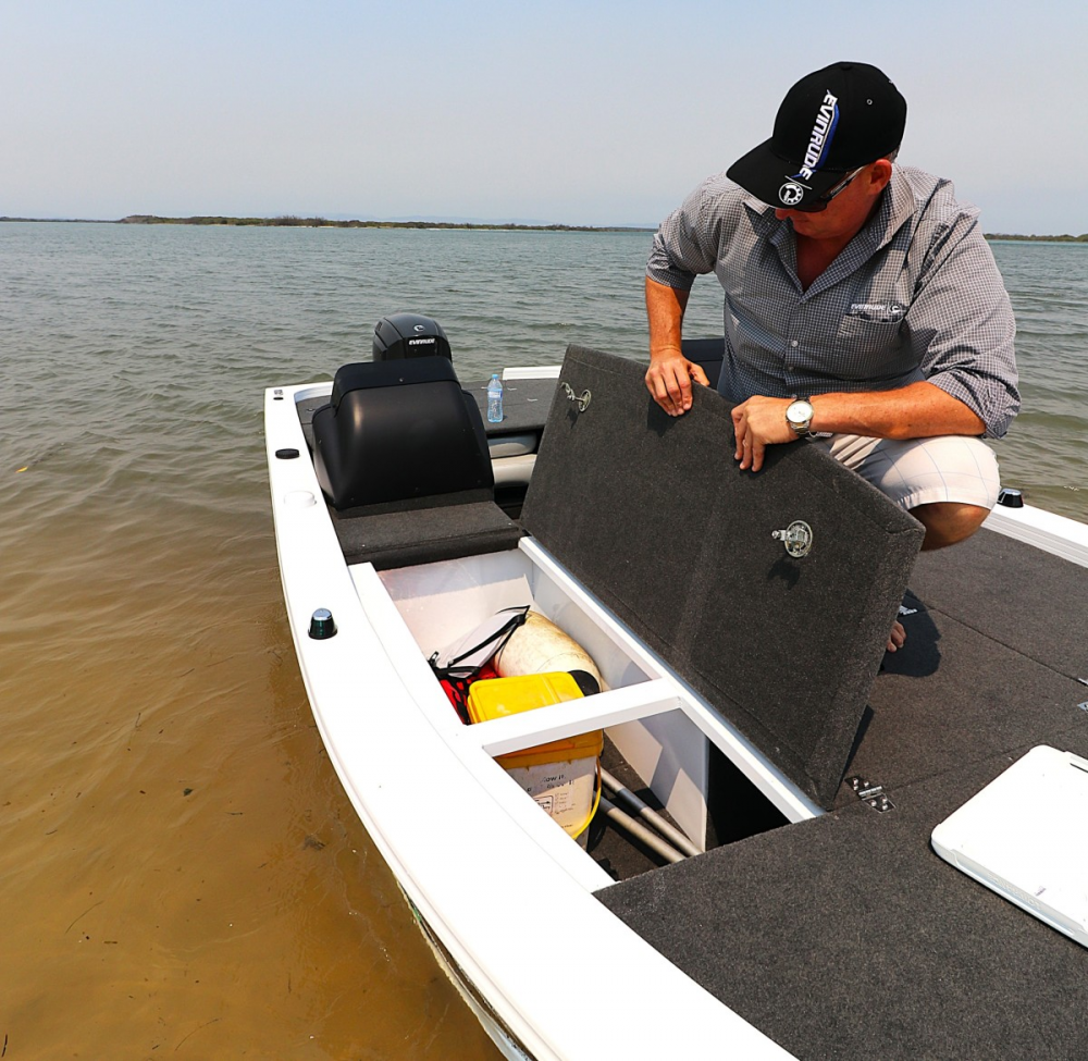 I loved the innovative folding backrest, which extends the casting area dramatically when you reach your fishing destination. It’s a full-width fold-down, making a truly functional rear platform while you hunt your prey with the aid of the remote electric outboard. These are just a few of the forward-thinking new ideas formulated by the Stacer engineers, giving Stacer a real difference from its competitors.