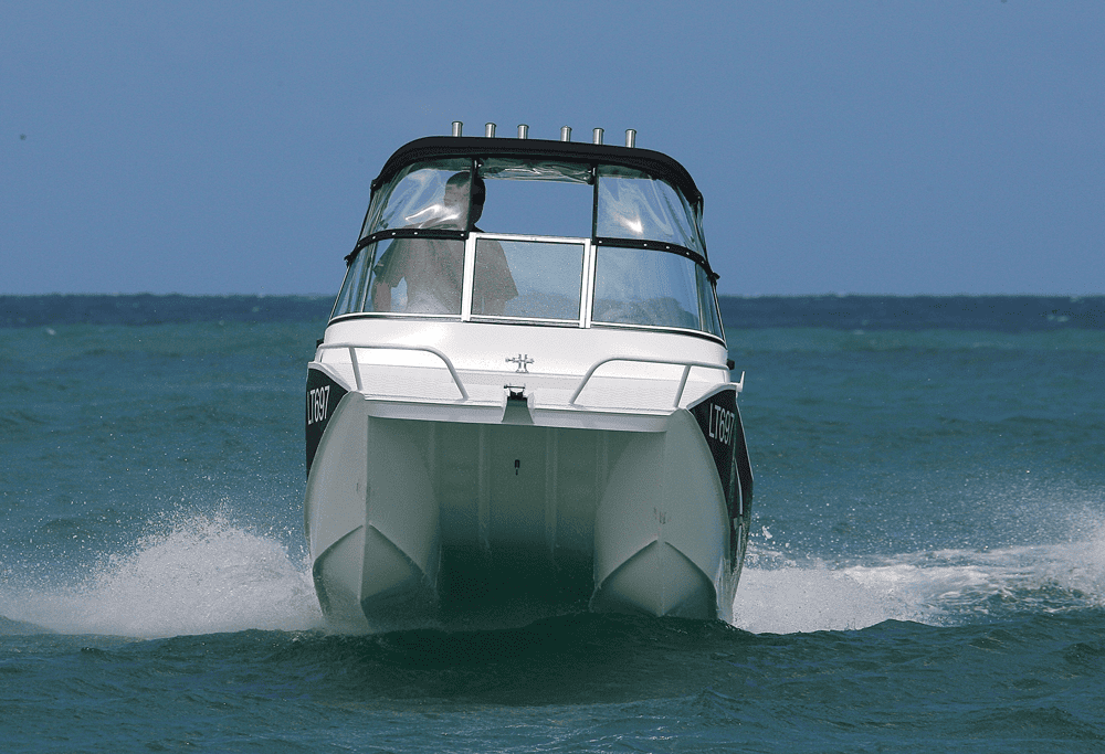 I must admit that I expected a great ride, but I thought that maneuverability would be its downfall due to twin hulls and a single engine. It's not! At rest and at low speeds, the Webster is exceptionalably stable and surprisingly manoeuvrable. As a whiting and bream fisherman, I also expected quite some hull noise with the water slap under the flat sections under the hull. This wasn’t apparent either; in fact, the package is very quiet at rest.