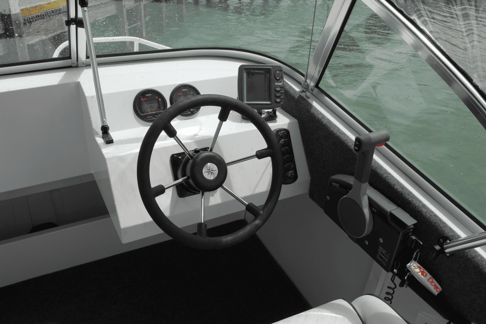 Webster's helm position is comfortable, and the compact dashboard is simple but effective. Our test boat was fitted with a small Lowrance X52 depth sounder that would be suitable for a base package, however a keen fisho or diver would undoubtedly opt for a larger, more expensive unit. Space would be a consideration for some of today's large screen displays. A combination sounder/GPS/plotter unit would be my option.