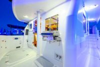 Up on deck and forward, the Portuguese bridge provides access to the foredeck, which can be utilized as another seating area while underway or at anchor. From the Portuguese bridge to port, you are welcomed to the boat deck, where the full expedition tender is kept. The large davit on the centerline facilitates easy launch and retrieval of tenders and toys from both sides and over the swim platform. This area also provides an outstanding place for relaxing and socialising whilst at rest.