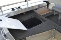 On the back, the Yamaha F50HP 4-stroke delivers easy electric start, power trim & tilt and reliable, fuel-efficient performance. The underfloor 50L tank gives you solid range for longer runs. For navigation and sounding, the Garmin GPSMAP® 953XSV paired with the upgraded GT56UHD transducer gives you crisp ClearVü and SideVü returns in ultra-high-def. Entertainment and comms are sorted too, with a Fusion RA70N stereo and marine speakers, plus a GME GX750B VHF for clear, waterproof communication.