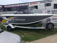 Powering the package is a Yamaha F90HP 4-Stroke with forward control, dual digital gauges, power trim and tilt, and SDS alloy prop for smooth, quiet operation. Professionally installed and workshop tested, the motor is bolted down with a PVC backing board and comes with dealer support and delivery training. With an Australian-made marine battery and 12 months QLD registration included, this Freestyler setup is ready to roll from the showroom to the water.