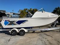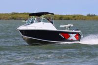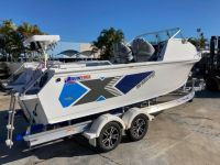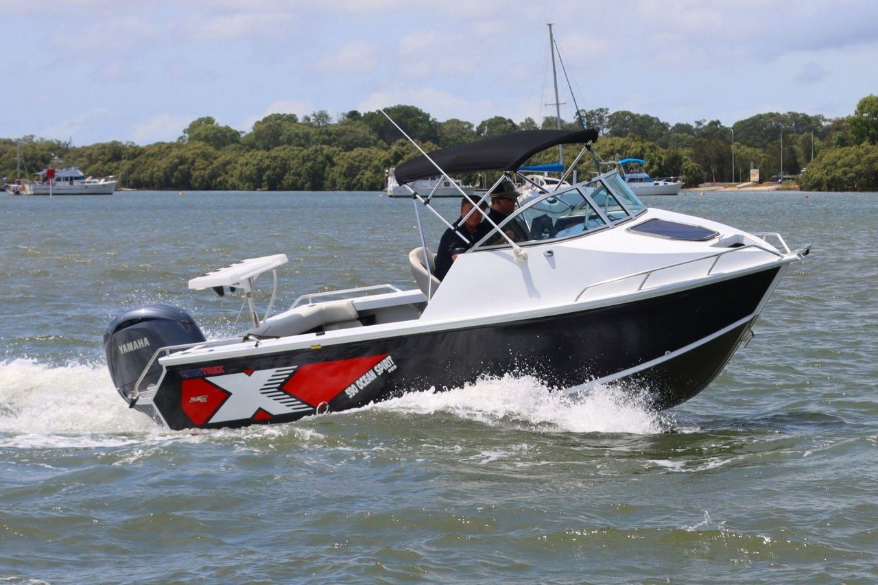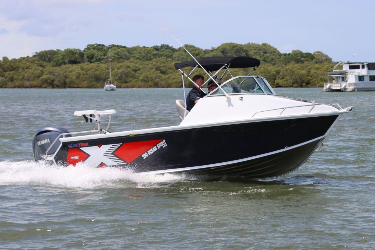 QUINTREX 590 OCEAN SPIRIT PRO - Painted hull with Factory Fitted Inclusions - Bimini & Envelope, Burley Bucket, Cabin LED Light, Cutting Board for Ski Pole, Drink Holder Cups, Marine Radio, Pole Mount Insert, Rear Ladder, Rod Holders (2), Scuppers, Ski Pole, Sound System & Speakers, Transom Pads, Underfloor Storage, Anchorwell, Cabin Storage, Cleat On Front Deck, Extruded Side Decks, Fully Weld Gunnels & Side Decks, Side Pockets, Transducer Brackets x 2, Painted Hull, Transom Grabrail, Bowrails, Rails: Side, Cabin Hatch, Windscreen, Cabin Bunk Infill Cushion, Cabin Cushions & Backrest, Deluxe Folding Rear Lounge & Backrest, Helm Box with Hatch, Seats Maritime Sport, Seats Navigator Storage Box with Hatch, Seats: Pedestal, Upholstered Side Pockets, Helm: Hydraulic Tilt Steering.