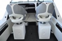 The 590 Ocean Spirit Pro package also includes a Garmin Echomap UHD2 95sv chartplotter/sounder combo for advanced navigation, a Muir 600W drum winch for effortless anchoring, and dual marine batteries with an isolation switch to ensure ample power for all onboard systems. Added conveniences such as a bimini and envelope with front and side clears, a transom door, a live bait tank, and multiple rod holders make this package ideal for fishing enthusiasts.