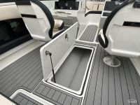 Alongside its looks is a list of features that can have this boat set up to deliver on any boating front, whether it be just cruising to your favourite spot for a picnic and some water sports, or heading off-shore to get your fishing fix, with a standard full wet locker that is integrated into the deck, a full 2-meter long ski locker, plus plenty of coaming width to fit rod holders, there is a way to set this boat up for any purpose.