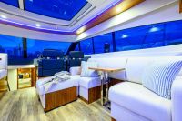 • Three Joystick Controls located Helm, Port & Starboard cockpit lounge