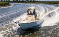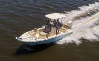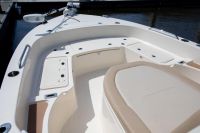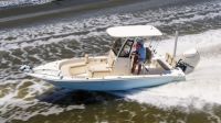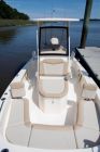 Anglers will appreciate the boat's extensive fishing features, including multiple stainless steel flush-mounted rod holders, a generous live bait well, and abundant storage compartments for tackle and gear. The shallow draft allows you to explore inshore fishing spots that are inaccessible to larger vessels, expanding your fishing horizons.
