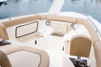 Step aboard to find a spacious and intelligently designed layout that maximises comfort and functionality. The bow features plush seating with removable cushions, allowing you to convert the area into a roomy casting platform when needed. The ergonomic helm station is equipped with advanced, intuitive controls and offers ample space for optional electronics, ensuring a seamless navigation experience.