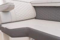 Bow w/Port & Starboard Loungers, Hinged Cushions & Fold-Down Armrests; Helm w/Convertible Backrest, Flip Up Thigh Rise & Sliding Base; Port Companion Seat w/Convertible Backrest & Flip Up Thigh Rise; Stbd Inboard Facing Seat; Port/Aft L-Shaped Lounger w/Hinged Port Cushions & Storage Below; Sunpad / Aft FacingTransom Lounger