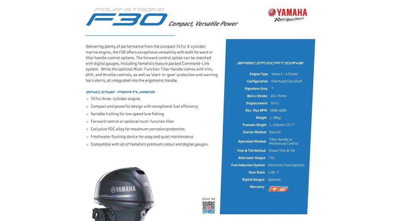 The new F30 features the very latest Electronic Fuel Injection system to deliver impressive power and excellent torque.