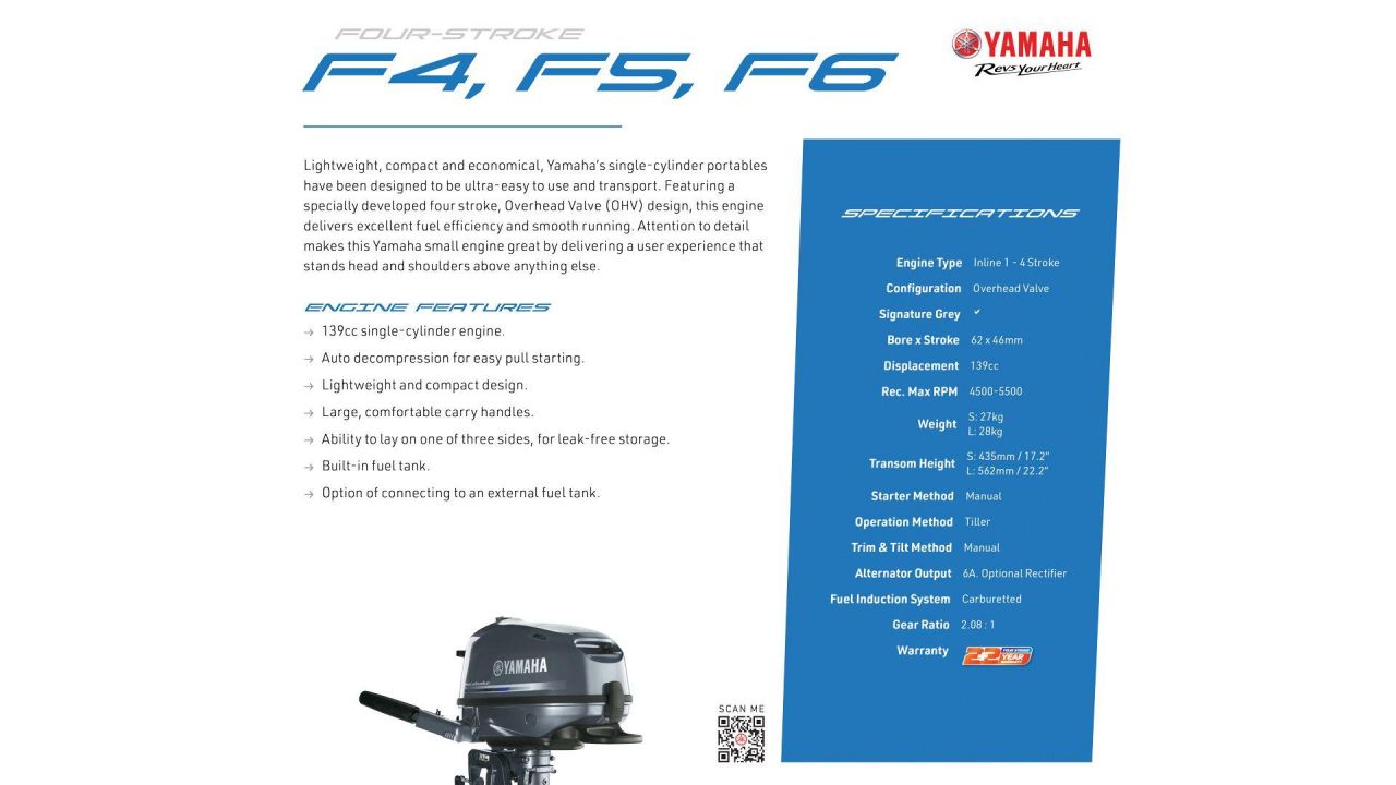 F6SMHA Yamaha 4 Stroke 6hp Short Shaft PORTABLE OUTBOARD FOR SALE